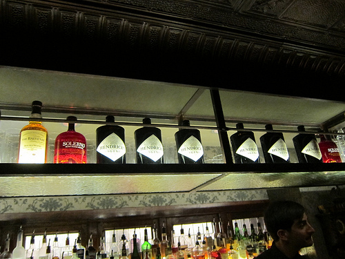 The bar had been transformed. The rack above the bar with its usual whiskeys had been cleared to showcase the liquors for the cocktails being made in that room.