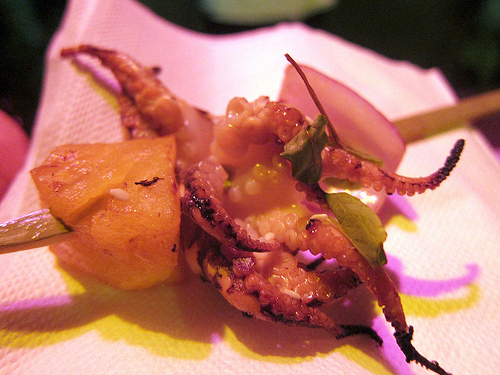 Around the side, they were serving Buffalo Trace neat along with grilled skewers. I tried the beef, chicken and octopus. Surprisingly the chicken was my favorite followed closely by the octopus. The kitchen did a great job turning out food for everyone.