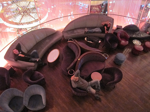 On my last night in Las Vegas, we went to check out what was going on at the Cosmopolitan Hotel. I’m in love with the Vesper but I figured it was good to see the other bars there. At the Chandelier, the massive 3-story bar that is the darling of the hotel shines with incandescent light made more brilliant by the thousands of crystals surrounding the bar. Since it was a Monday, it was a bit slower than usual so they had closed down the middle floor. Well, not to us.