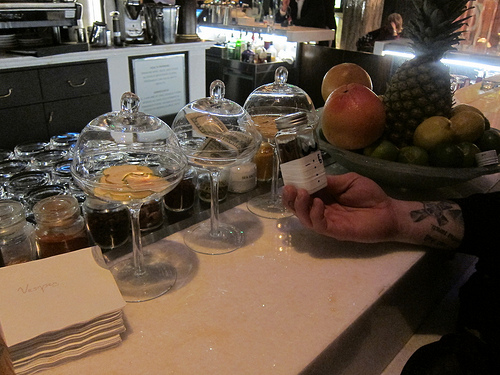 When you hang with bartenders, you tend to not bother other bartenders on duty with trivial things like cocktails. We got a bottle of Meletti. Funny, Vesper is the first place I ever had that amaro and of course I love it.