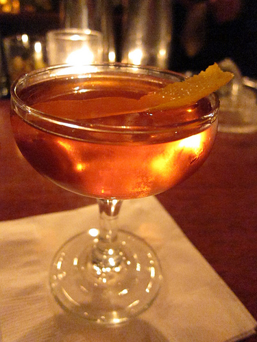 I arrived intending on a drink or two before dinner nearby. A friend met me and while I waited for him, I perused the short happy hour list of just three cocktails. The full cocktail list would have to wait for another night. I chose the most expensive happy hour cocktail, the Dominicano ($8). I saw right away it was a Negroni variation (gin, Campari, sweet vermouth). I’ve been drinking a lot of Negronis lately, perfecting my cocktail at home.