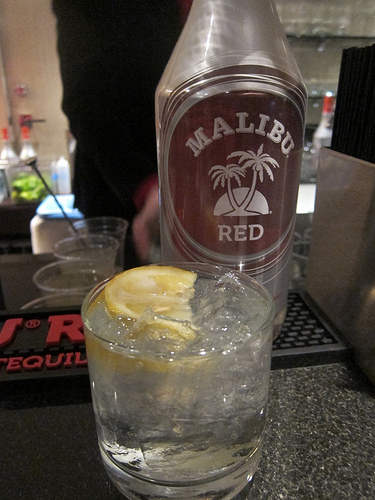 At Malibu Red’s private party, they were making a few cocktails. This one, the Malibu Red Twist, is simply Malibu Red with lemon lime soda with a twist. Easy peasy.