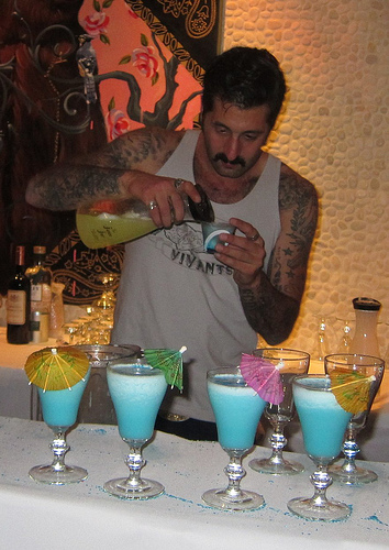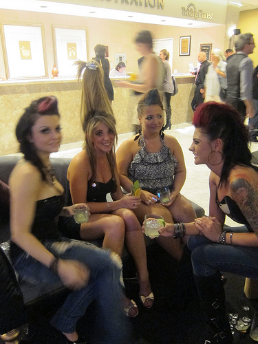 Tobin Ellis, founder of Bar Magic and Social Mixology, had specified everyone had to have a cool hair-do for the event. I saw some really fun and hair-raising styles. One of the girls in the above picture had her hair rolled all the way up! That must have taken not only gobs of gel but I suspect wire.