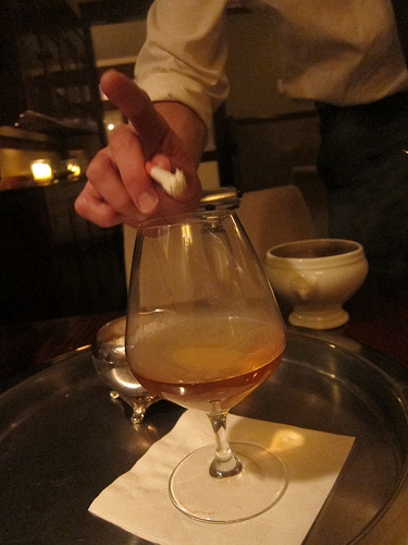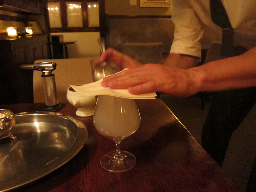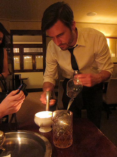 A few weeks ago, I caught the end of the winter cocktails at 1886. Although you can’t get the Smoking Jacket (pot still Irish whiskey, housemade 1886 tobacco bitters, maplewood smoke, orange vanilla ash) anymore, I thought it was such a cool process of how they made the drink, I had to post the photos. Created by bartender Lacey Murillo, head bartender Garrett McKechnie kindly showed us the steps to how to make the Smoking Jacket.