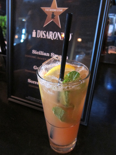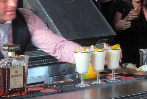 Guests imbibed on Disaronno cocktails such as the Sicilian Smash (Disaronno, Barcadi 8, blood orange, lemon, mint) and the Sorrentine Punch (Disaronno, rum, Campari, grapefruit) while watching the competitors make 3 cocktails in 10 minutes for the judges.