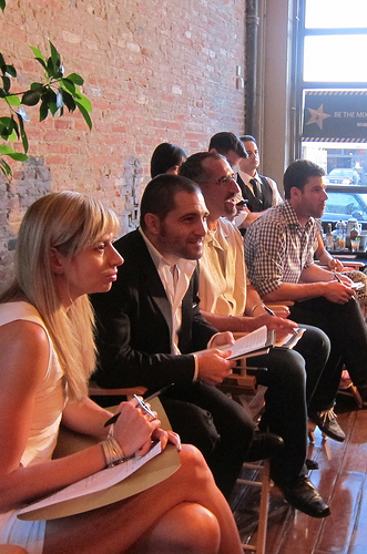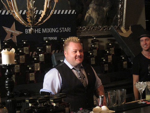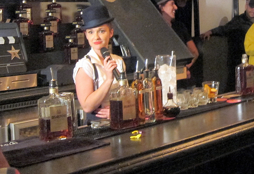 Lauran September from the Spare Room in LA made a dramatic entrance. She was carried out on a chair by two half-dressed men. Watch the video here. Tobin Ellis had been drawing the personalities out of the more quiet bartenders– asking if they spoke other languages or inquiring about their favorite curse word. As you can imagine, Lauran hardly needed the Q&A to show off her personality after that grand entrance but when she answered the curse word question, the room grew quiet. And probably quite a few bartenders murmured her favorite word when they realized they could have disarmed the crowd with a circus trick of their own. Lauran landed in 4th place.