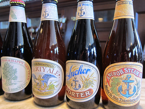 Anchor Steam comes from the term steam beer where the brewery brewed without refrigeration. Anchor would lay out the shallow vats on the roof letting the frigid San Francisco nights cool down the beer. Steam was seen rising in the night.