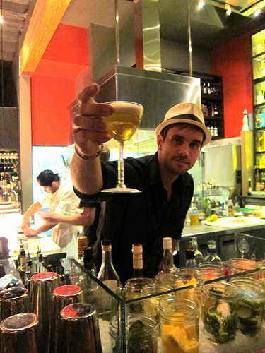 Jeremy Lake, the bar manager for both Chef John Sedlar’s restaurants, Playa and Rivera, recently won the Galliano Golden Vespa Los Angeles regional competition with his cocktail, the Italian Motorcade. One of his prizes is the Galliano Vespa, a golden one of course.