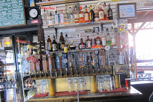 Described as a beer garden to me, I thought nothing of the rockers, older couples, hipsters and other assorted characters assembled on loose gravel paved patio. After getting a beer from one of their zillions of taps or a drink, find yourself squeezed in to listen to people talk about their college reunions though I think I rather have sat with the bikers.