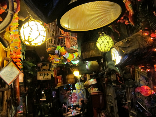 I really can’t remember the first time I ever went to Bahooka but I have always loved it. Sadly the Polynesian/ Tiki restaurant and bar is closing in a couple of weeks. The space and alcohol license was sold but Bahooka maintains its name. This article mentions the possibility of salad dressing under the Bahooka name to be sold at Costco. During my visit on Sunday, our bartender mentioned there were two sales. So the beloved kitschy decor and possibly all those fish tanks may have gone to another buyer. I can only hope they mean to display or open their own tiki bar someday.