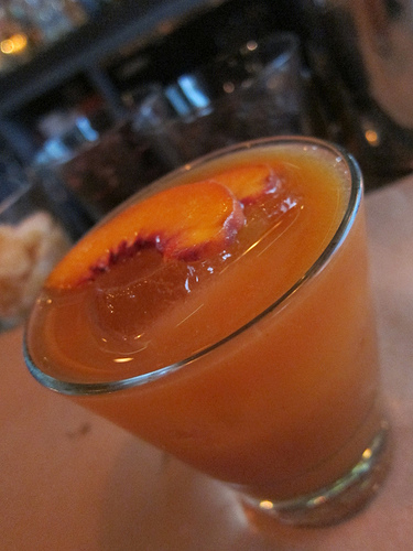 Blazing Saddles – bourbon, Black Seal rum, fresh-pressed peach, lemon, toasted chile reduction, canela (cinnamon)