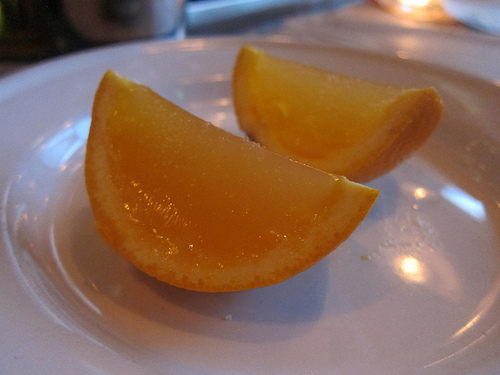 Bar Ama is introducing the New Tradition. I am familiar with the practice of serving tequila or mezcal with orange slices and cinnamon but how about if you combine the agave spirits with gelatin and serve it as orange “wedges?” That’s what Brian is doing. Perked up by both orange and lemon juices, the New Tradition rocks. This is a jello shot I can get behind!