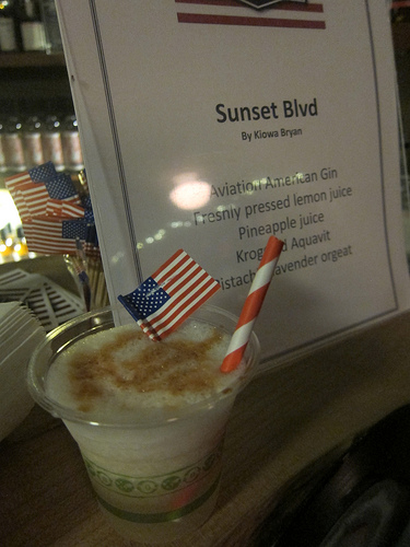 I also tried the Real Wild Child (Aviation gin, coconut cream, lime, honey syrup, soda water). I loved this drink. And the cool American flag cocktail umbrella ended up in a lot of Bartender Yearbook pictures.