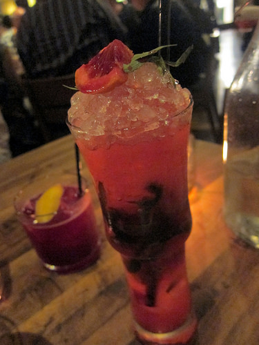 One of the amazing “new classic” drinks is a Penicillin. Usually with two types of Scotch and honey, MB Post pays homage to California’s farmers’ market bounty by introducing Scotch to beets. The amazingly colored drink is rich without being heavy.