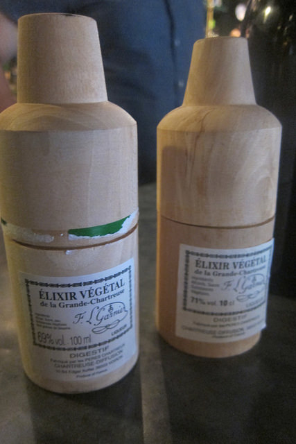 I’ve had the magical Elixir Vegetal which is not available in the US (you can buy it from pharmacies in France, however). The Elixir was the first product that was produced after the monks were gifted with the recipe. Currently it’s sold at 69% (or 138 proof). It used to be produced at 71% (140 proof). It’s considered a digestive and you take about a cap’s worth to settle your stomach. Right now, only the Green, Yellow, Green VEP and Yellow VEP are available in the US. VEP means the Chartreuse has been aged longer in oak barrels. Tasting through the range, I discovered my love affair with Green Chartreuse remains strong but discovered a new appreciation for Yellow VEP.